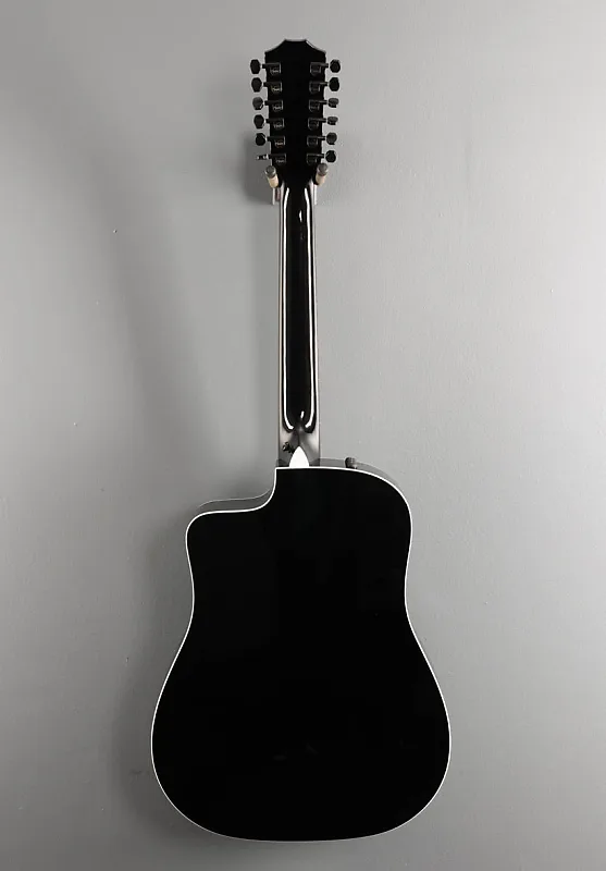 Черный корпус Dreadnought с венецианским вырезом, верхняя дека из термообработанной ели, одинарная кольцевая розетка из искусственного перламутра, распорки класса C с Relief Rout, многослойный клен Big Leaf для задней и боковых частей, белая окантовка, гриф из древесины западноафриканского эблема Crelicam с искусственным перламутровым маркером 4 мм"