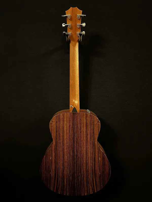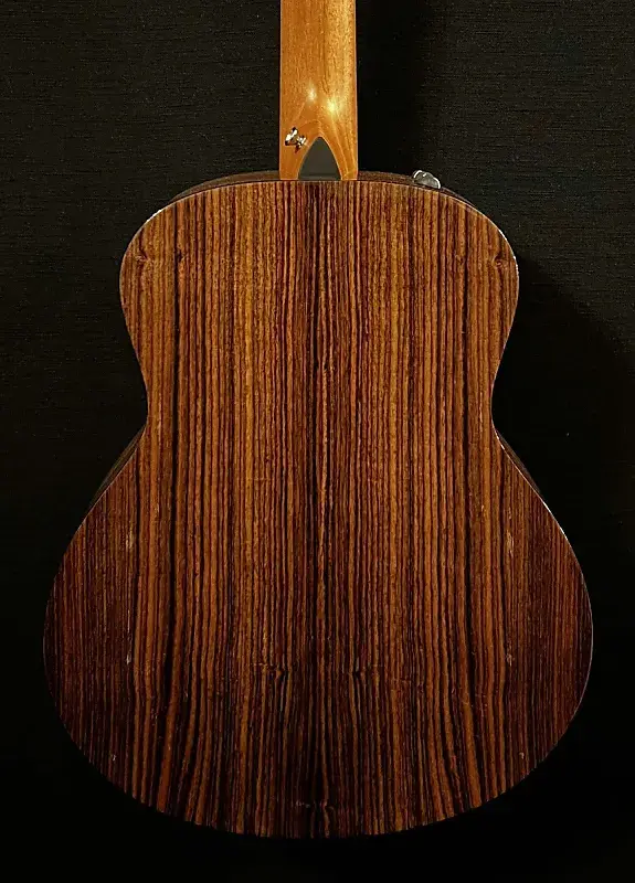 Натуральная глянцевая отделка корпуса, миниатюрная форма корпуса Grand Symphony, верхняя дека из ели Ситка, трехкольцевая пластиковая розетка, X-образное размещение подставки с вырезом под релеф, задняя дека и корпус из слоистого индийского палисандра, гриф из эбена Вест-Африки Crelicam с