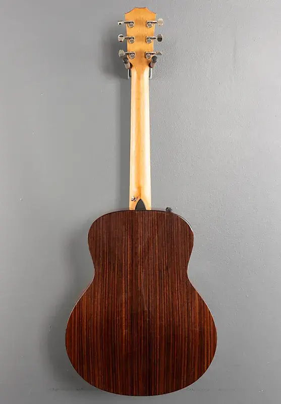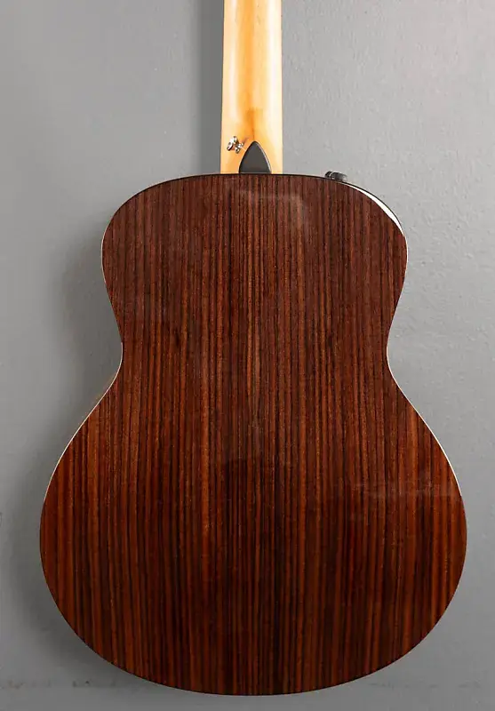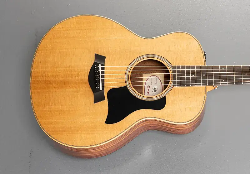 Натуральная глянцевая отделка корпуса, миниатюрная форма корпуса Grand Symphony, верхняя дека из ели Ситка, трехкольцевая пластиковая розетка, X-образное размещение подставки с вырезом под релеф, задняя дека и корпус из слоистого индийского палисандра, гриф из эбена Вест-Африки Crelicam с