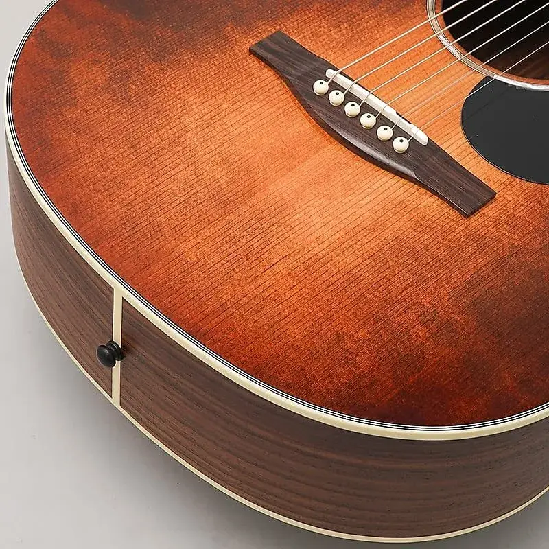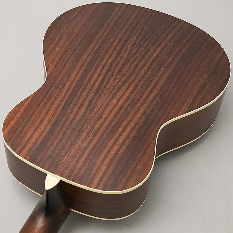 Эта аутентичная гитара оснащена верхней декой из массива ели ситки, задней и боковыми стенками из фанеры розового дерева, которые создают чистый тон, а также блестящей глянцевой отделкой верхней деки.