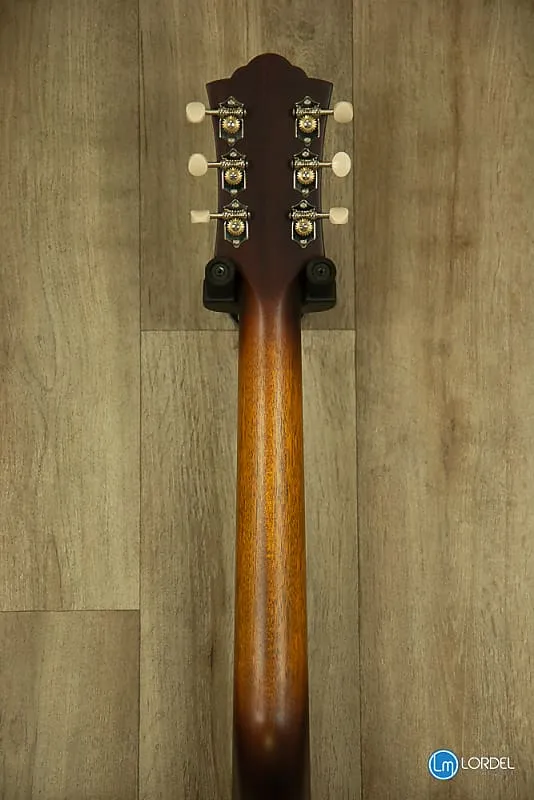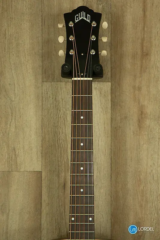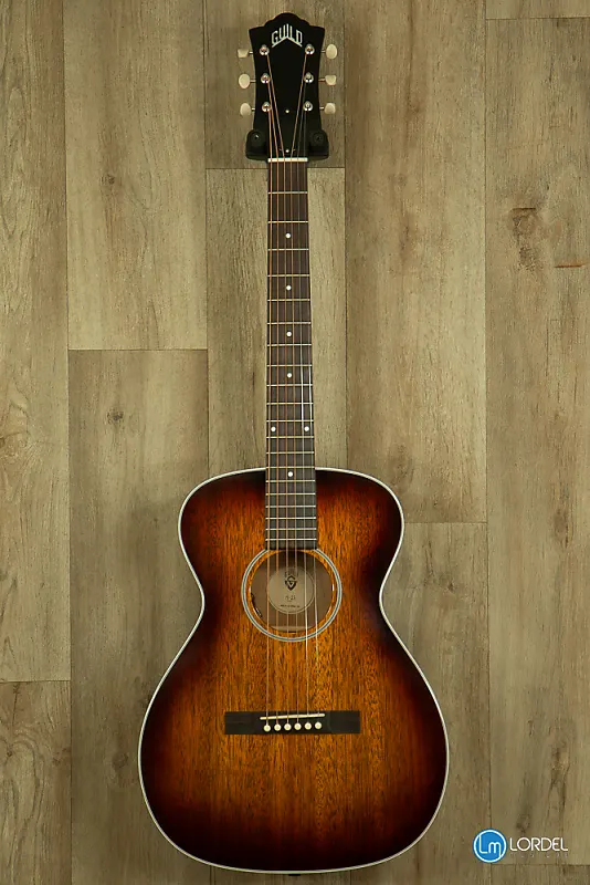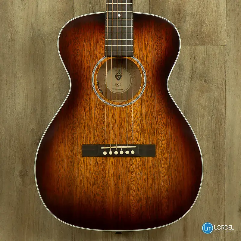 Оригинальная M-20 была первой гитарой, выйдя с производственной линии в 1967 году, когда производство располагалось в Хобокене, Нью-Джерси. Сегодня серия M является знаковым элементом бренда Guild - она производится в Окснарде, Калифорния, на высокотехнологичном заводе. M-25E основана на модели M-20, с дополнительными эстетическими элементами и головой грифа с блестящей отделкой. Эта акустическая гитара концертного размера (M) изготовлена с верхней декой, корпусом и обечайками из массива махагона. Она оснащена палисандровым мостом и накладкой грифа, а также костью в области порожка. Новшества M-25E включают полностью окантованный корпус, винтажную розетку, логотип Guild из перламутра на головке грифа, верхнюю деку и головку грифа с блестящим нитроцеллюлозным лаком, корпус и гриф с сатиновой отделкой, а также изысканную отделку California Burst. Каждая M-25E поставляется с пронумерованным и вручную подписанным сертификатом подлинности и жестким футляром. Доступно в California. Burst с микрофоном LR Baggs Element VTC.