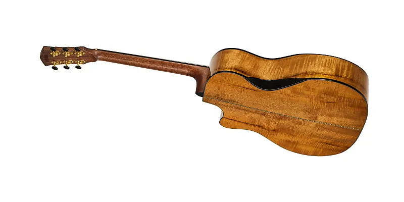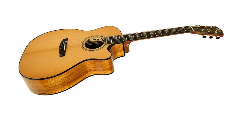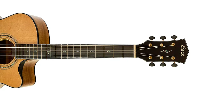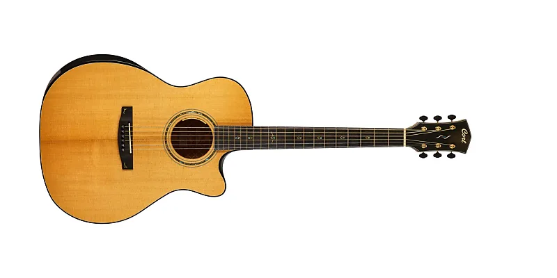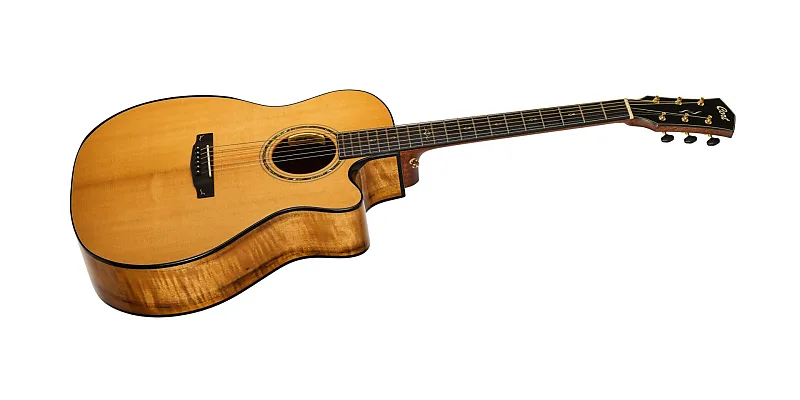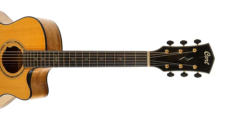 Cort Gold Edge имеет верх из тонированной массива ели Ситка, спинку и боковины из массива клена Myrtlewood с фактурой пламени, усиленную орехом гриф из махагони, накладку на гриф из эбена, винтажные механические колки Gold с черными ручками, мост из эбена, систему звукоснимателей L.R. Baggs Anthem и включает жесткий футляр.