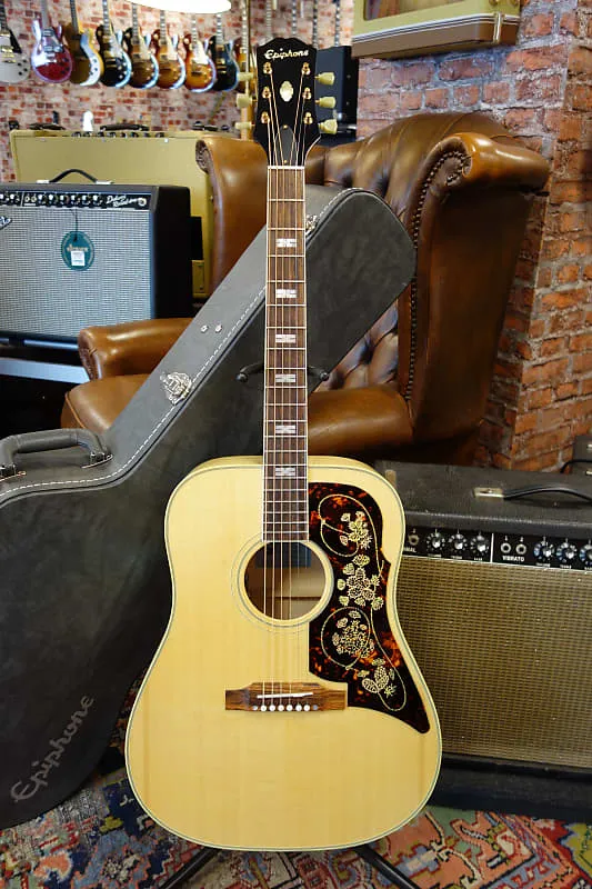 Компания Gibson производила оригинальный Epiphone Frontier на своей фабрике в Каламазу с 1958 по 1970 год. Сейчас модель FT-110 Frontier снова выпускается в США и с гордостью изготавливается вручную в Бозмене, штат Монтана, лучшими акустическими мастерами Gibson. Гитара оснащена верхней дека из цельной ели Ситка и спинкой и боковыми панелями из цельного кленового шпона, грифом из индийского палисандра, традиционной вручную вырезанной X-образной системой распорок, золотыми колками Gotoh Keystone, культовым медиаторным щитом с тематикой «лассо и кактус» и мензурой 25,5 дюймов для мощного звучания. Она снабжена звукоснимателем L.R. Baggs VTC, поэтому готова к сцене и студийной работе прямо из прилагаемого жесткого чехла.