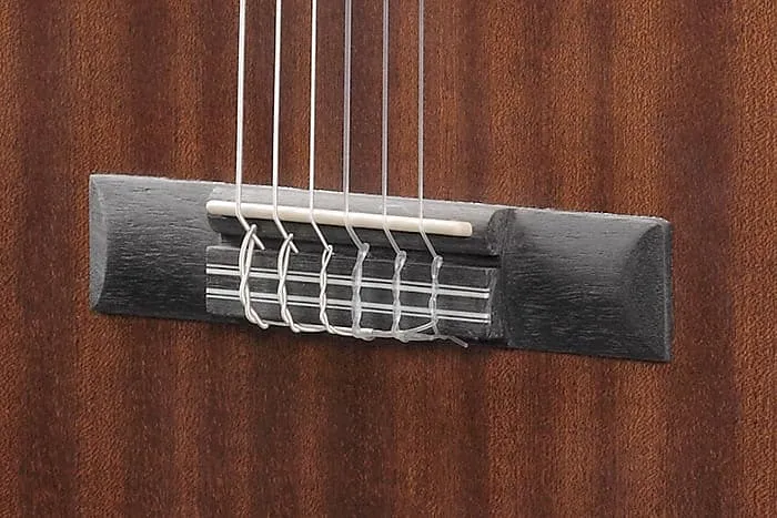 Бридж из пурпурного дерева передает вибрации струн непосредственно корпусу, обеспечивая естественный и теплый тон.