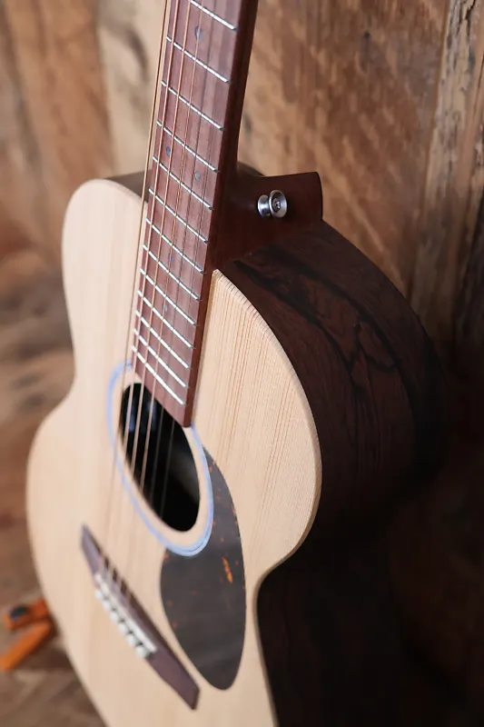 Улучшения для удобства игры включают более тонкую накладку грифа с мягко скошенными краями для комфорта, а также оптимизированное расстояние между струнами и современную форму бриджа для плавной и комфортной игры. Также имеется подобранная шейка из ценных пород древесины, накладка грифа и бридж для улучшенного звучания и сустейна, а также электроника Martin E-1 с встроенным хроматическим тюнером и регуляторами громкости, тональности и фазы.