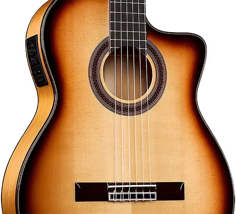 Студийная гитара Córdoba GK Studio в исполнении Edge Burst - это потрясающая фламенко-гитара, созданная для сцены. Она оснащена верхней декой из цельного европейского ели, корпусом и обечайками из кипариса, а также мягким вырезом для удобного доступа к высоким ладам. Гитара оснащена предусилителем Fishman Presys Blend, что делает ее идеальной для живых выступлений. Немного меньшая глубина корпуса, шея и ширина грифа обеспечивают комфортное ощущение при игре, а высокоглянцевое покрытие и прозрачная защита стиля фламенко добавляют визуальной привлекательности.