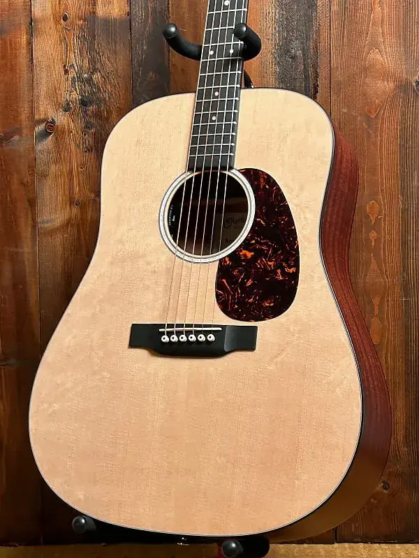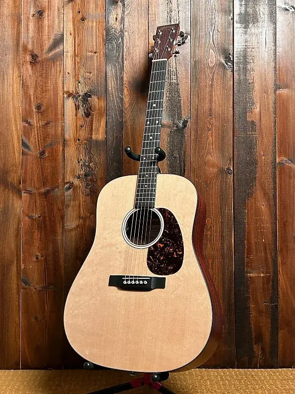 Эта модель Dreadnought из цельного дерева - гитара с отличным звучанием по доступной цене. Новинкой этой модели являются потрясающие вставки на грифе и розетке из перламутра с многоцветной окантовкой розетки. Гриф и мост выполнены из сертифицированного FSC материала Richlite, корпус имеет сатиновую отделку, а шея отделана вручную. Также в этой модели используются электронные компоненты Martin E-1 с встроенным тюнером в звуковом отверстии, что позволяет настраивать гитару в любое время без использования педали. Гитара поставляется в премиальном мягком чехле, так что она готова к путешествиям и приключениям!