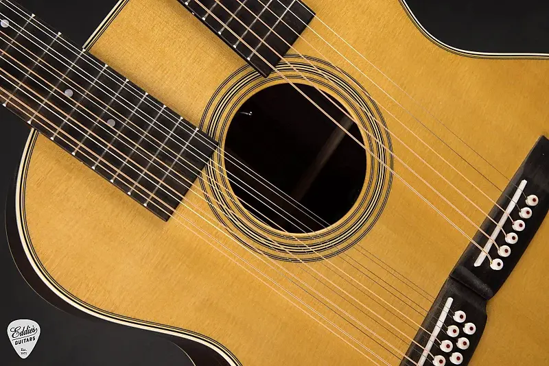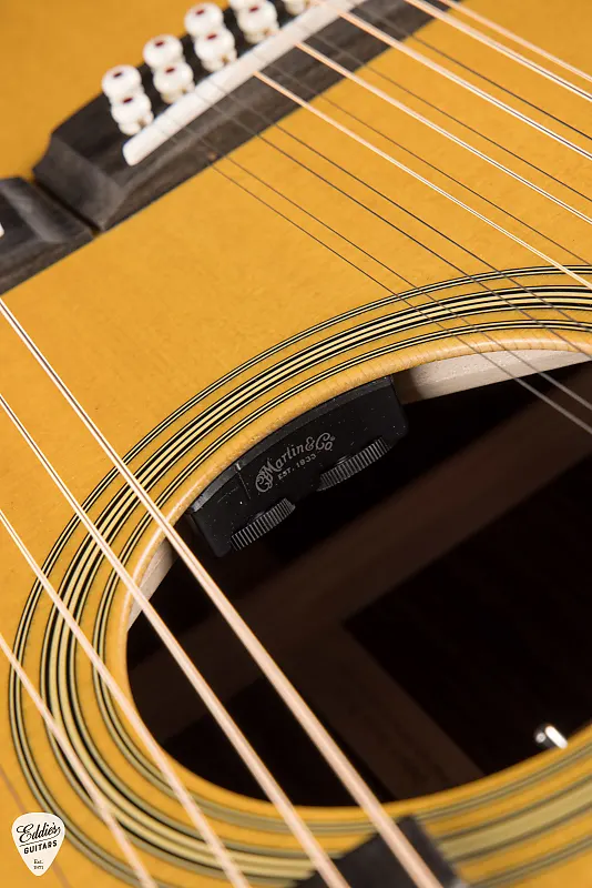 Система бриджа отражает изысканный подход Martin к удобству игры и звучанию. Кажкая шея оснащена собственным Modern Belly бриджем с вставными компенсированными костяными седлами, обеспечивая точную интонацию и богатое сустейн. Ширина 6-струнного бриджа составляет 2 5/32", а 12-струнный бридж немного шире - 2 5/16", что идеально подходит как для игры пальцами, так и для перебора медиатора. Костяные штырьки бриджа с точками под узор черепахи добавляют еще один изысканный штрих винтажного стиля.