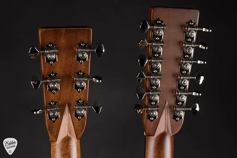 Кажкая грифовая часть предлагает уникальный звук и ощущения, тщательно адаптированные к потребностям взыскательных музыкантов. 6-струнный гриф имеет профиль Modified Low Oval с высоким Performance Taper, обеспечивая современное, удобное ощущение захвата, идеально подходящее для широкого спектра стилей. 12-струнный гриф, также выполненный с комфортной низкой овальной формой, предлагает немного большую ширину для оптимального расположения струн и ясного звучания. Оба грифа вырезаны из отборной древесины, отделаны сатиновым покрытием и оснащены гладкими гранями из черного дерева (легато), украшенными элегантными накладками из перламутра Style 28. Белые боковые точки, костяные порожки и никелированные открытые колки с ручками butterbean завершают классический вид Martin, а двойные цельные головки грифа с надписью в старом стиле логотип с гордостью демонстрирует наследие этого инструмента.