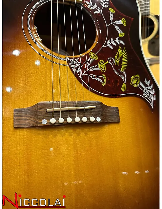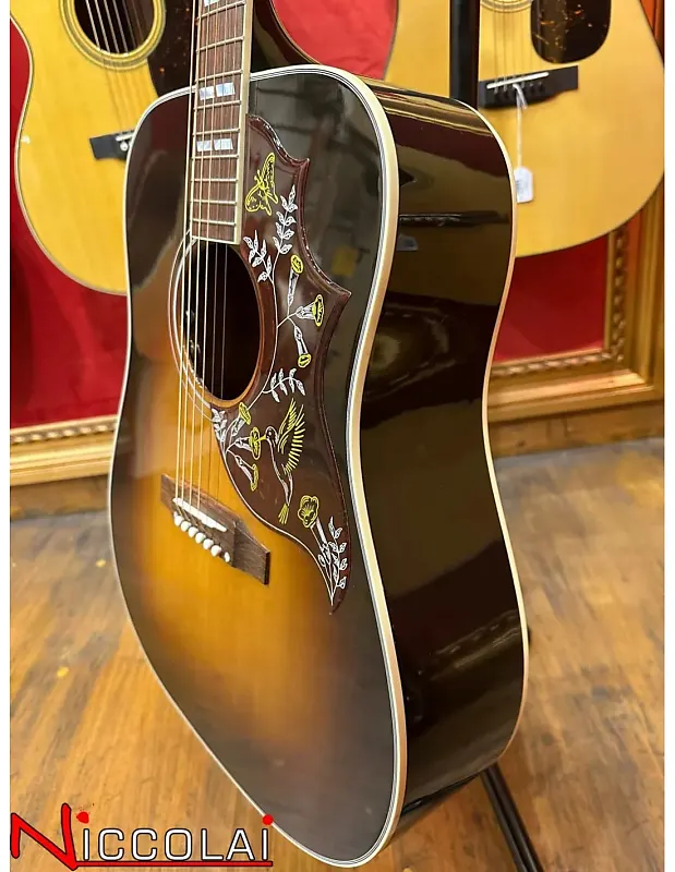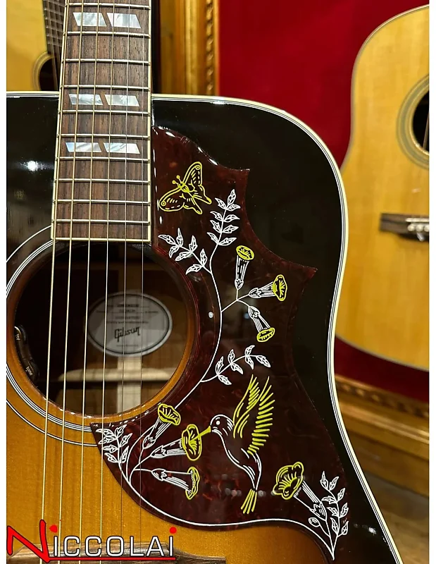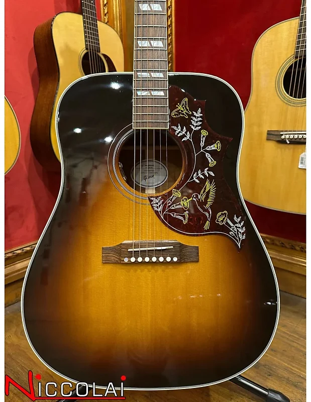 Большая часть привлекательности Hummingbird заключается в его универсальности. Независимо от того, как вы играете на этой гитаре с плоским корпусом, она издает богатые, глубокие тона и одинаково хорошо подходит как для перебора аккордов в первой позиции, так и для солирования. Просторный корпус из красного дерева и верхняя дека из отборной еловой древесины Sitka прекрасно справятся с ритмом в руках рок-н-ролльного аккомпаниатора или поддержат самую тонкую игру современного альтернативного певца и автора песен. Гриф Hummingbird из красного дерева имеет удобный округлый профиль и инкрустацию из перламутра в виде параллелограмма. Эта "птичка" оснащена верхним порожком, седлом и колками TUSQ, тюнерами Grover Rotomatic, культовой графикой Hummingbird на накладке и оборудована электроникой LR Baggs VTC, так что она готова к подключению на сцене или в студии. В комплект входит жесткий кейс Gibson.