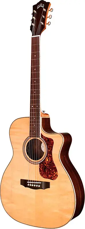 Серия Reserve Orchestra от Guild является наглядным примером мастерства сотрудников американского бренда в выборе древесины и ее оптимальном сочетании. Одной из моделей этой новой серии является OM250CE Reserve Natural с вырезанной корпусной частью. Верхняя дека выполнена из массива ситка ели с красивой текстурой. Дуги и нижняя дека (выпуклая) из индийского палисандра. Окантовка выполнена из кленового дерева с эффектом пламени. Розетка сочетает палисандр, клен и перламутр. Глянцевая полиуретановая отделка подчеркивает прекрасную текстуру выбранной древесины. Гриф из красного дерева формы C имеет сатинированную отделку для повышения комфортности игры. Музыкальный порожек (nut) шириной 43 мм, а мензура гитары составляет 648 мм. Гриф с ладовым инкрустациями из перламутра и бридж выполнены из Pau Ferro. Комплектность инструмента дополняется системой усиления Fishman GT-1.