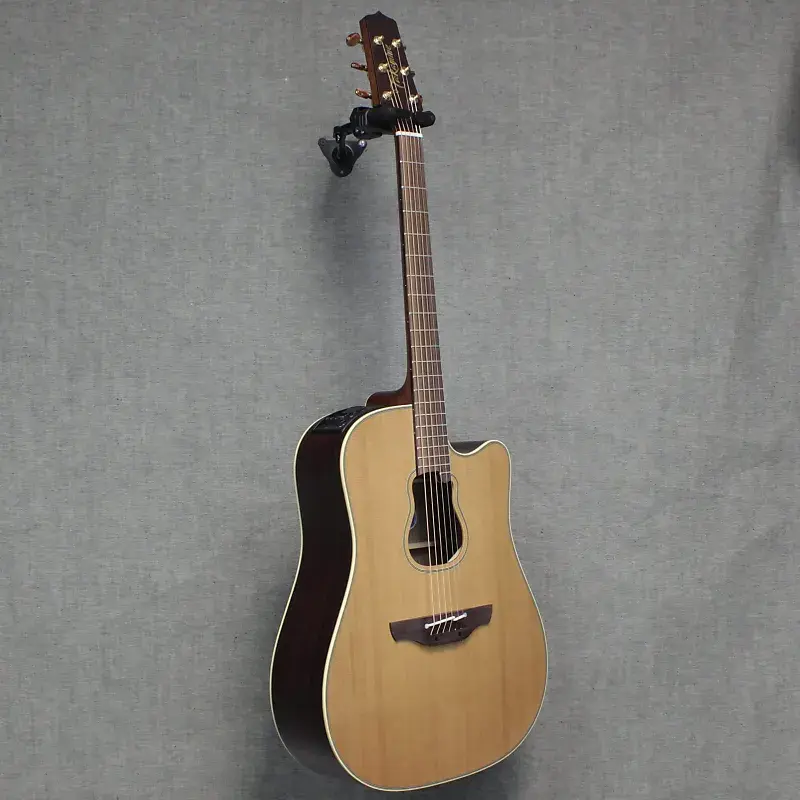 Прошел всего один короткий год, и второй альбом Гарта «No Fences» возглавил чарт Top Country по версии Billboard Альбомы возглавляли чарты и достигли #3 в списке Billboard Top 200, где оставались в топ-40 в течение 126 недель. Он стал международной звездой, все это время играя на своей Takamine EN15C (похожей на современную P3DC). Такамин с кедровой декой и сатиновым покрытием с вырезом стал неотъемлемой частью имиджа Гарта Брукса - и бренд Takamine начал свое грандиозное восхождение.В июне 1995 года Гарт позвонил с идеей. Он видел музыкальное видео с акустической гитарой Gretsch с треугольным звуковым отверстием, что вызвало у него мысль о создании индивидуальной модели. Концепция была проста. Изменить дизайн звукового отверстия на его EN15C с круглого на форму выреза корпуса dreadnought. Когда я отметил, что гитарообразное звуковое отверстие «не будет очень традиционным», Гарт ответил: «Так и вырез корпуса». Конечно, он был прав, и после того как мы обменялись серией грубых макетов по факсу, готовая, способная и заинтересованная фабрика Takamine занялась разработкой первых прототипов того, что впоследствии станет второй моделью Takamine. подписьная модель гитары, Garth Brooks GB7C (с включением любимого числа Гарта).