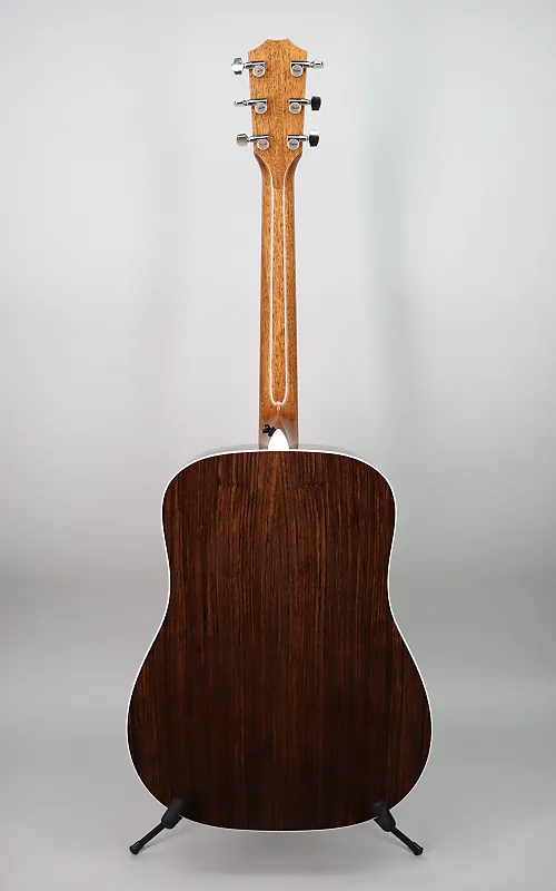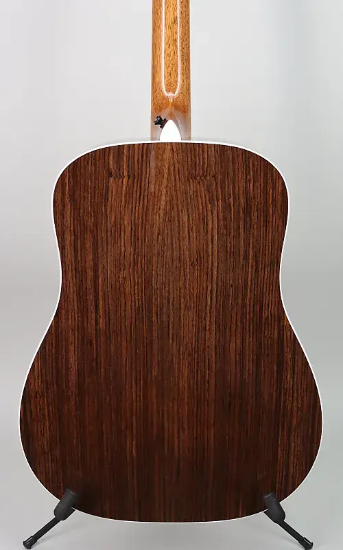 Характеристики: Форма dreadnought. Верх из цельной ели Ситка; задняя дека и обечайки из цельного индийского палисандра; белая окантовка; розетка из зеленого абалона с тремя кольцами; накладка из черепахового пластика; традиционная X-образная фанерная система распорок с двухсекционной задней дека и без клина; гриф из неотропического махагони с обычным профилем; накладка и бридж из эбена западноафриканского происхождения; верхняя ширина порожка 1-3/4”; длина мензуры 25-1/2”; колки из никеля с никелевыми кнопками; порожек из белого TUSQ и седло из белой микарты; бридж из западноафриканского эбена с соответствующими колками с абалоновыми точками. Натуральная отделка. Роскошный жесткий чехол.