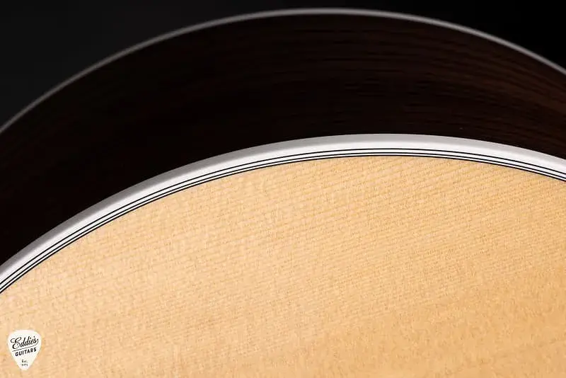 Каждая деталь 815e является свидетельством приверженности Taylor как традициям, так и инновациям. Глянцево отделенная неотропическая шейка из махагони, с грифовой накладкой из африканского эбена Crelicam, предлагает невероятно гладкую игру опыт, в то время как крупные инкрустации из перламутра в виде бриллиантов добавляют нотку сдержанной элегантности. Белая окантовка вокруг корпуса и грифовой доски подчеркивает эстетичность гитары, создавая эффектный контраст с насыщенными оттенками задней и боковых частей из розового дерева. Зеленая абалонская трехкольцевая розетка добавляет именно столько роскоши, чтобы подчеркнуть статус этой гитары среди лучших инструментов Taylor.