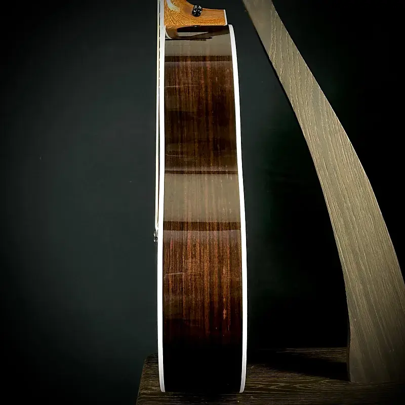 Taylor Legacy 855ee оснащена корпусом и верхней декой из индийского палисандра и верхней декой из ели Ситка. Эстетические детали напоминают о ранних моделях серии 800, с чистым классическим дизайном, который так любит Боб: белая пластиковая окантовка, трехкольцевая зеленая абалоновая розетка, не гравированные вставки из перламутра Large Diamond на грифе, эбеновые колки с зелеными абалоновыми точками, корпус и гриф с глянцевой отделкой, имитация черепахового зеркала на накладке и никелевые колки Taylor. Звукосниматель LR Baggs Element VTC (громкость, тембр, компрессия) с мостовым звукоснимателем и полностью дискретным предусилителем класса A, включающим управлением громкостью и тембром на звуковом отверстии.