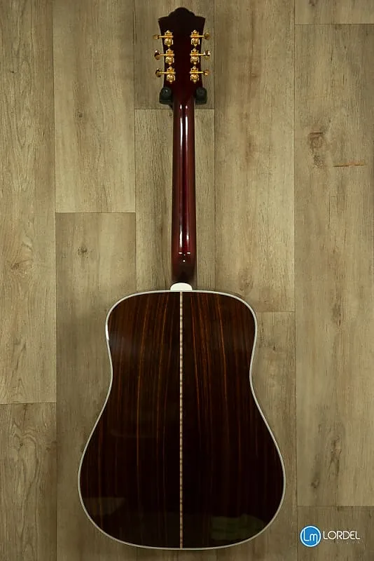Впервые представленный в 1968 году в качестве высококлассной модели по специальному заказу, D-55 был настолько тепло принят, что в 1974 году компания Guild включила его в массовое производство. Известно, что Tommy Smothers играл на D-55 в шоу Smothers Brothers в 1960-х годах, и с течением десятилетий эта гитара завоевала популярность и долговечность, оказавшись в руках более современных исполнителей, таких как Waylon Jennings, Billie Joe Armstrong и David Nail. Самое ожидаемое возвращение акустической гитары Guild на сегодняшний день, Guild D-55 вернулась и лучше, чем когда-либо. Она остается верной всем особенностям высококлассной модели своего предшественника 1968 года, включая верх из ели ситака AAA, спинку и обечайки из цельного индийского палисандра, гриф и бридж из черного дерева и лаковую отделку на основе нитроцеллюлозы. Внутренние улучшения включают резной Adirondack-баттинг, а соединение грифа выполнено в технике «ласточкин хвост», подогнанной вручную, чтобы сделать эту Новейшее поколение D-55 - самое легкое, самое звучное и самое мощное на сегодняшний день. D-55 оснащена самой узнаваемой головкой Guild, полностью инкрустированной, с комбинацией вставок Guild "Peak and Shield" на накладке из эбена. Подбираемая под накладку из эбена грифовая панель также полностью инкрустирована фирменными "V-Blocks" из орха и перламутра Guild, а механика выполнена в стиле "железнодорожной колеи". Накладка D-55 расположена на цельном махагоновом грифе с красивым центральным швом из ореха по всей длине от пятки до головки грифа. Натуральное нитроцеллюлозное покрытие D-55 нанесено вручную для минимальной толщины и максимальной резонансности, которая с возрастом лишь улучшится. Предусилитель - это система LR Baggs, и каждая гитара поставляется с сертификатом подлинности с ручной подписью, а также в жестком футляре Premium Guild с увлажнителем.