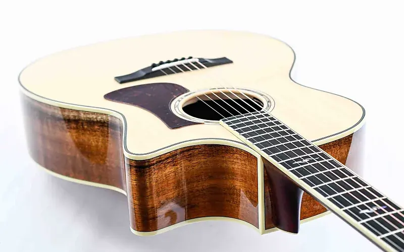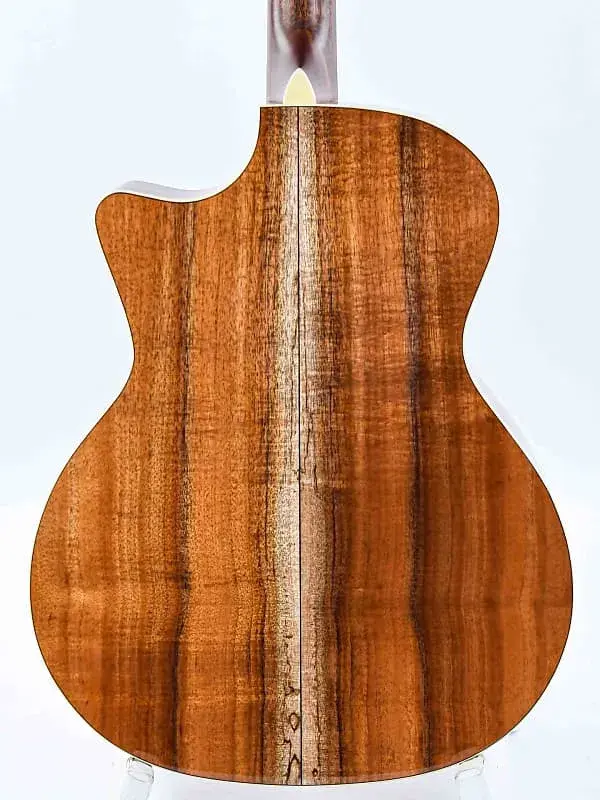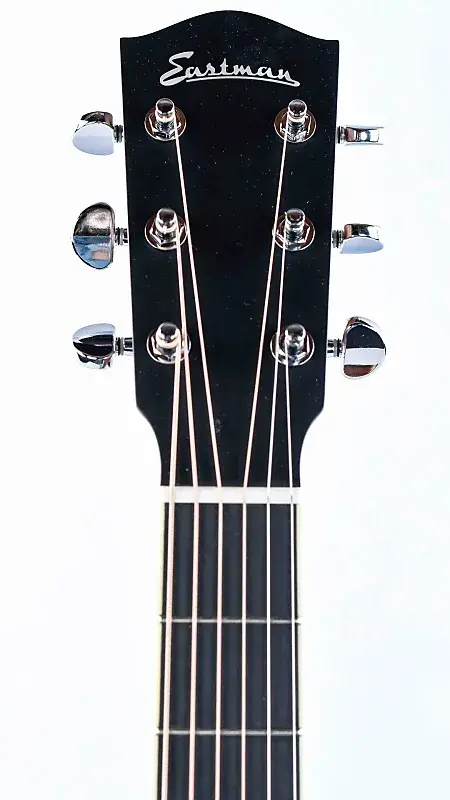 Для этого лимитированного выпуска Eastman использовал koa для задней части и боковин, а верх выполнен из знакомой ели ситка. Лак Truetone Gloss красиво подчеркивает красоту древесины. Eastman также позаботился о стильном внешнем виде инструмента с перламутровой инкрустацией на грифе и окантовкой из ивороида.