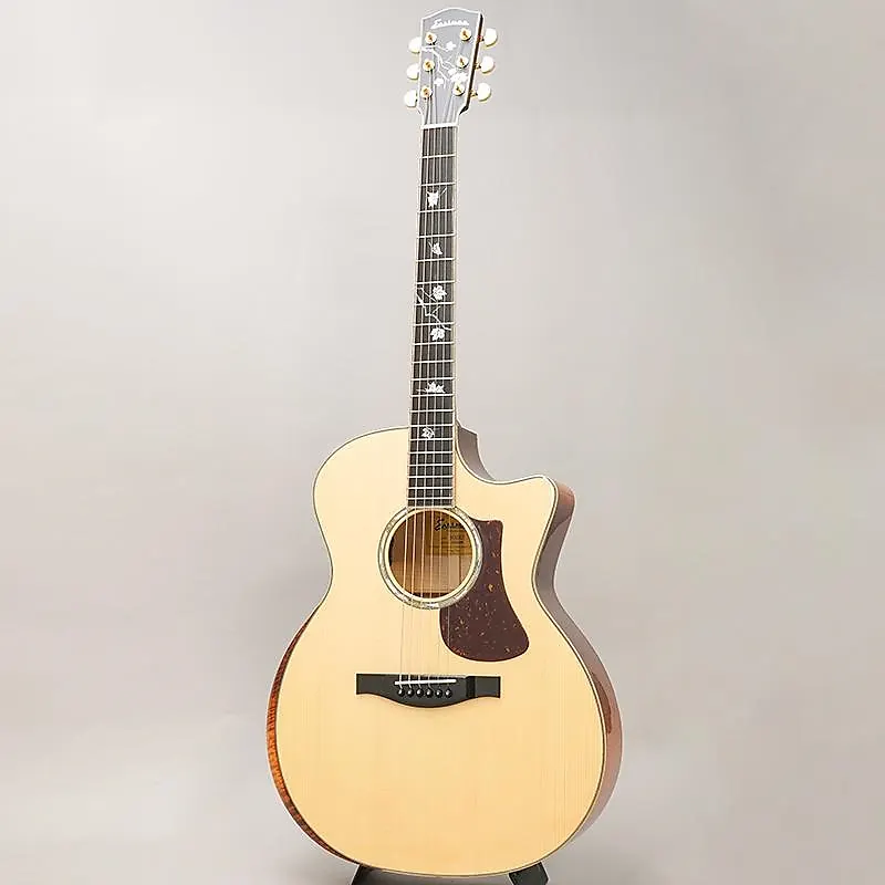 Она имеет верхнюю дека из европейской ели, красиво текстурированную спинку и обечайки из клена с «пламяным» рисунком, гриф из красного дерева и грифовую накладку из черного дерева. Несмотря на цену ниже ¥300,000, гитара обладает роскошным подбором материалов, полностью массивным корпусом, глянцевой отделкой, оригинальной системой грифа с плотной передачей тона, колками Gotoh и даже звуковым отверстием на контуре подлокотника.