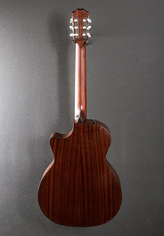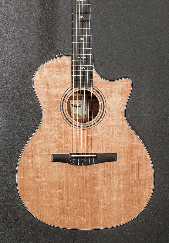 Естественный цвет, глянцевая верхняя дека и матовое покрытие корпуса, форма корпуса Grand Auditorium с венетийским вырезом, верхняя дека из ели ситка, пластиковая розетка с тремя кольцами, система брусков серии Nylon, спинка и обечайки из сапеле, черная окантовка, гриф из западноафриканского креолика эбенового дерева с инкрустацией из итальянских акриловых камней Gemstone.
