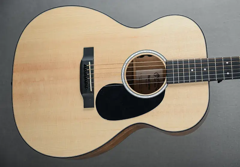 Натуральный цвет, форма корпуса 000-14 ладов, верх из ели Ситка, резная X-образная распорка, узор из перламутра с мульти-полосатой розеткой, черная окантовка с мульти-полосатой вставкой на верхней деке, задняя и боковые части из тонкого шпона koa, гриф из сертифицированного FSC Richlite.