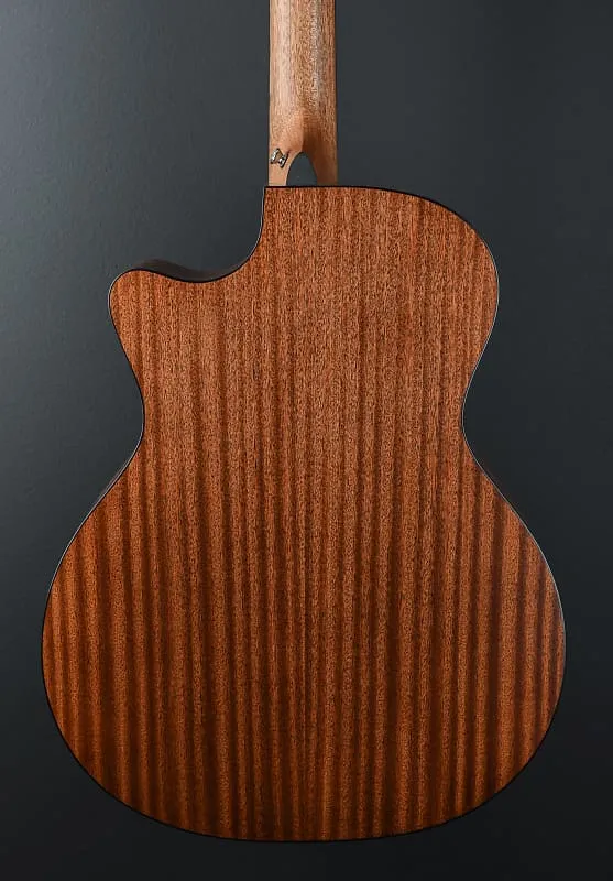 Натуральная, лакированная дека и сатиновая отделка корпуса/грифа, форма корпуса Grand Performance с вырезом на 14 ладов, еловая дека, узор из перламутра с многоцветной розеткой, распорка типа Scalloped X, корпус сзади и по бокам из сапели, черная окантовка с многоцветной инкрустацией на деке, FSC-сертифицированный гриф из Richlite с узором из перламутра