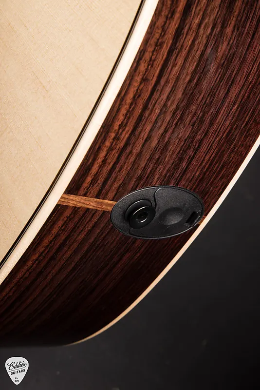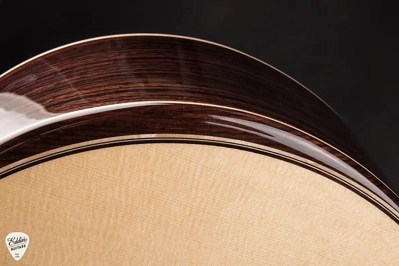 В основе ее резонанса находится верхняя дека из ели Ситка (Sitka spruce top), ценимая за широкий динамический диапазон и четкую артикуляцию, в сочетании с потрясающими двухчастными боковыми панелями и задней декой, которые придают теплоту и ясность звучания. Глянцевое покрытие (gloss finish) подчеркивает природную красоту древесины, в то время как светлый однотонный клен Переплет придает элегантное обрамление его захватывающей дух эстетике. Радиус подлокотника из индийского палисандра обеспечивает комфорт игры, что делает длительные сессии легкими.