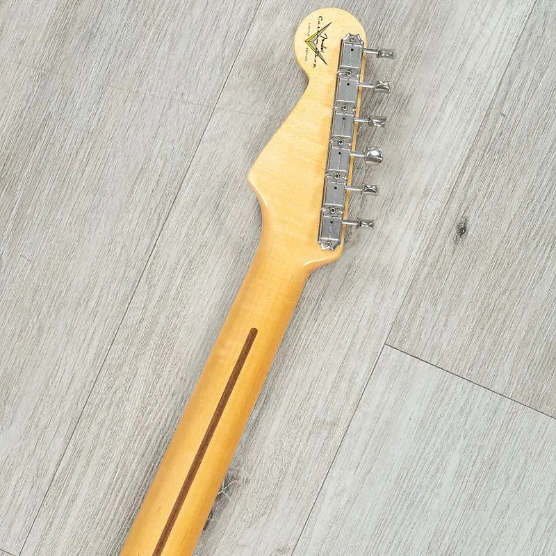 Его цельный гриф из радиально распиленного клена выполнен с особым профилем Soft “V” к 70-летию, основанным на невероятном грифе Strat июля 1954 года. Он увенчан накладкой на гриф с винтажным комбинированным радиусом (7,25” до 9,5”) и 21 средними винтажными ладовыми позициями (47095) лады и кость для верхнего порожка толщиной 1,625”. Три вручную намотанные звукоснимателя ’54 Strat из Custom Shop создают классическое звучание Strat с чистыми, звонкими верхами, передаваемое через проводку в стиле '54 Strat с вощеным конденсатором и пятипозиционным переключателем.