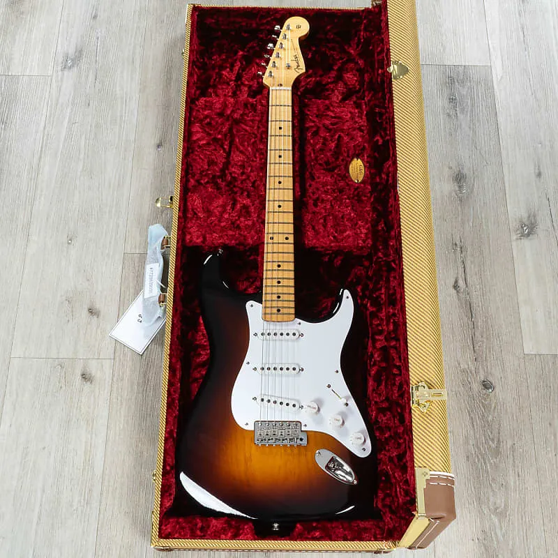 В честь 70-летия Stratocaster - платинового юбилея величайшей в мире электрогитары - Fender Custom Shop представляет Лимитированную серию 70-летнего юбилея Stratocaster 1954 года. Его корпус из двух частей выбранного ясеня (с смещенным швом на высоких частотах) звучит с певческими высокими, сладкими средними и плотными низкими частотами и покрыт великолепным лаком Wide Fade Two-Color Sunburst с различными степенями состаривания, включая варианты Time Capsule, NOS, Deluxe Closet Classic, Relic, Journeyman Relic, Heavy Relic и Super Heavy Relic.