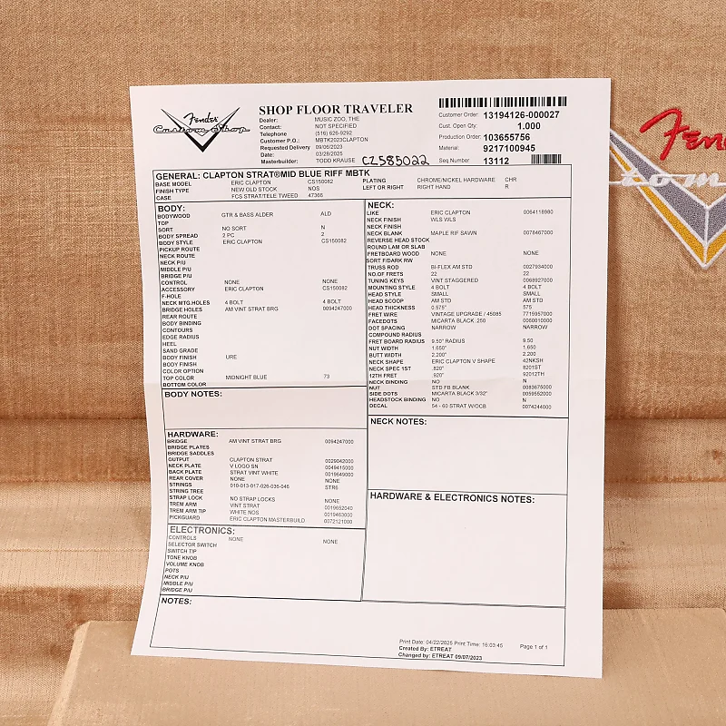 Включает: жесткий футляр, сертификат подлинности, ручку тремоло, аксессуары для футляра и документацию