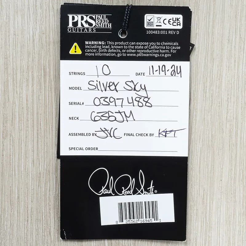 Music Store Live гордится тем, что является авторизованным дилером Paul Reed Smith. Этот John Mayer Silver Sky 100% новый и продается с полной гарантией производителя. Фотографии соответствуют точной гитаре, которую вы получите.