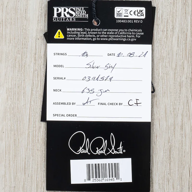 Другие высококачественные спецификации включают кость в качестве верхнего порожка, формованную металлическую панель для разъема (изогнутую, чтобы подключение и отключение гитарного кабеля было удобным), переработанные ручки и двухступенчатый регулировочный стержень PRS (доступный с передняя часть грифа для удобства использования). Чехол премиум-класса PRS в комплекте.