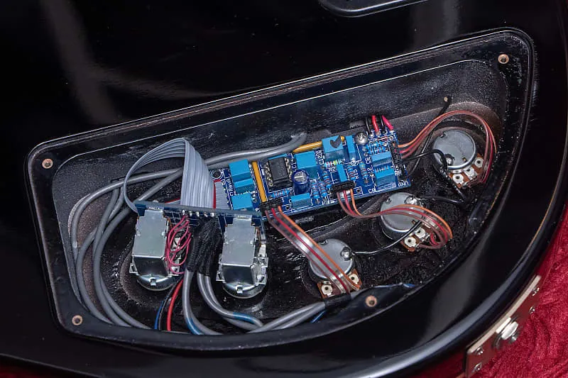Звукосниматель оригинальный двухкатушечный с рельсовыми магнитами, предусилитель оригинальный и оснащен 3-полосным эквалайзером.