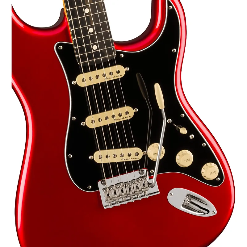Stratocaster American Pro II обеспечивает мгновенное ощущение знакомого звучания и звуковую универсальность, которую вы ощущаете и слышите сразу, с широкими улучшениями, которые в сумме составляют не что иное, как новый стандарт для профессиональных инструментов.