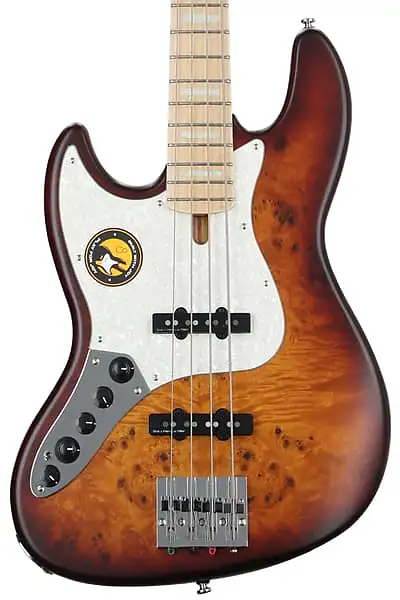 Электрический бас-гитара с 4 струнами, для левшей, корпус из болотного ясеня, верх из капа тополя, гриф из клена, накладка грифа из клена, активный предусилитель и 2 сингл-койл звукоснимателя - цвет Tobacco Sunburst.