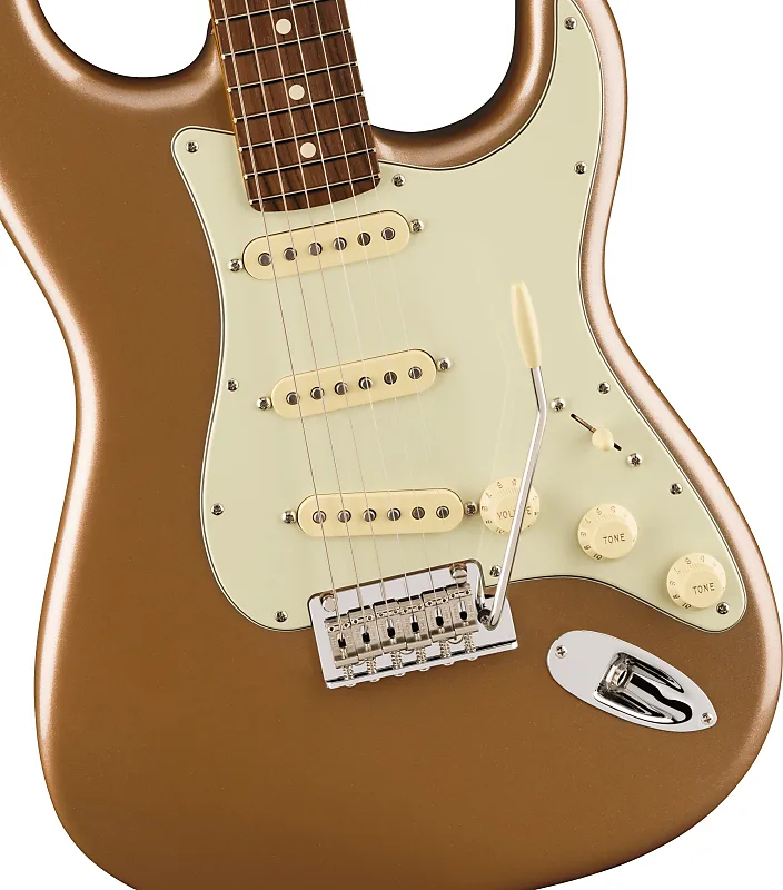 Популярная шея с формой Deep "C" теперь имеет гладкие закругленные края грифа, сатиновое покрытие "Super-Natural" и вновь сконструированную пяточку шеи для максимально комфортного ощущения и легкого доступа к верхнему регистру. Новые одинарные звукосниматели V-Mod II Stratocaster стали более выразительными, сохранив звонкость и тепло. Улучшенный тремоло-мост на 2 точки с холоднокатаным стальным блоком увеличивает сустейн, ясность и блеск верхних частот.