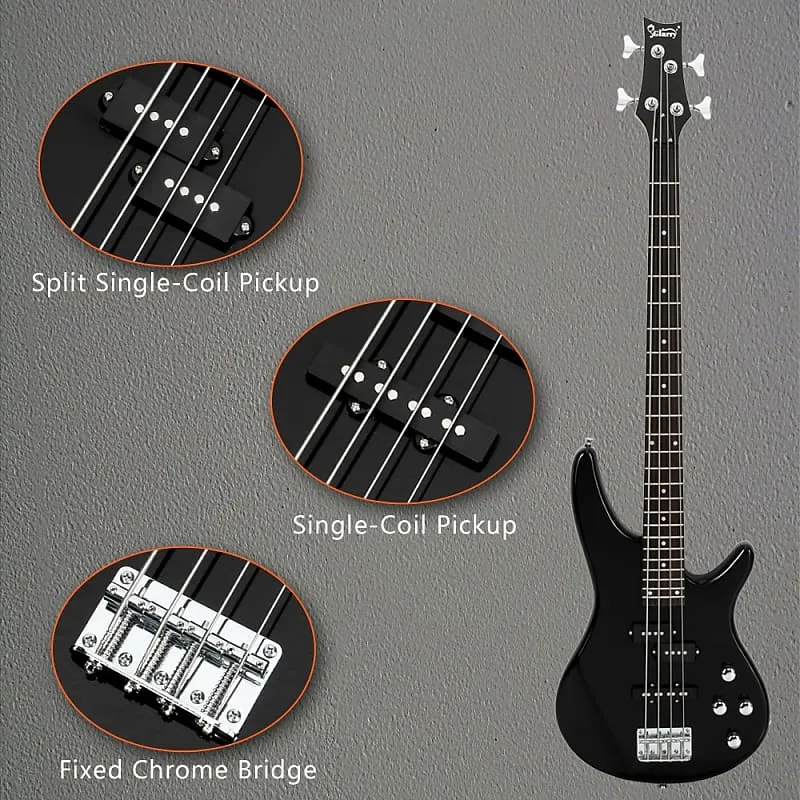 Наша электрическая бас-гитара поставляется с портативной сумкой для удобной транспортировки, плечевым ремнем, медиатором для бас-гитары и шнуром усилителя, что позволяет легко начать играть прямо из коробки. Этот полный пакет включает в себя все необходимое для начала работы и оттачивания навыков игры на бас-гитаре.