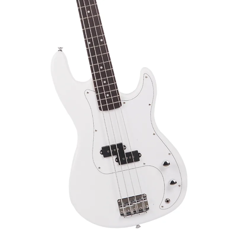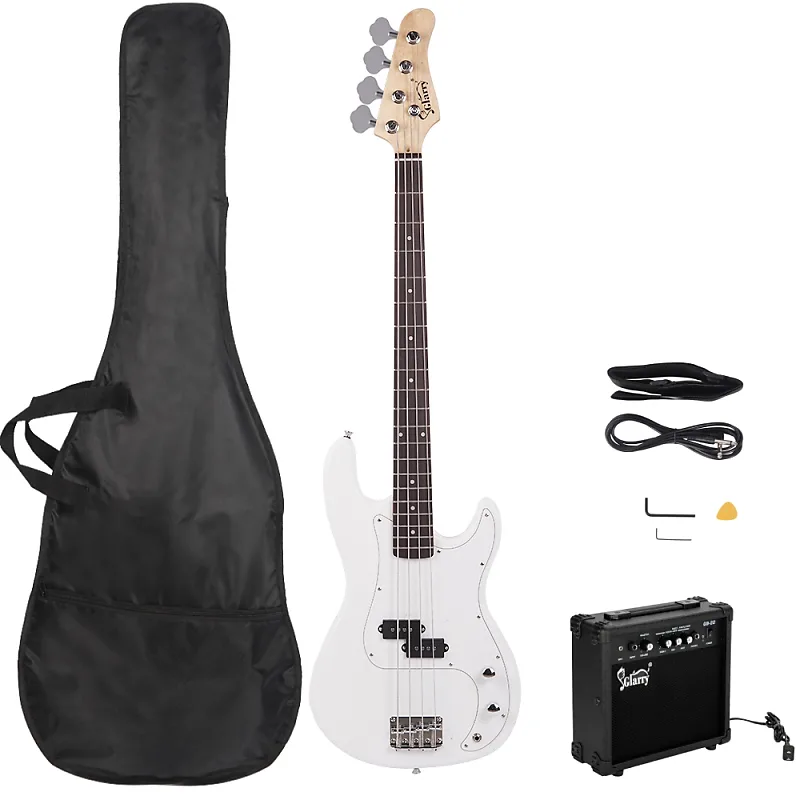 Бас-гитара Glarry GP с раздельным однонамоточным звукоснимателем, белая, с усилителем