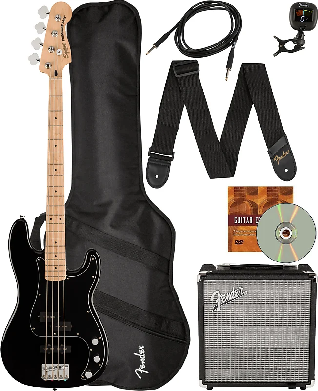 Одна бас-гитара Squier Affinity Series Precision, мягкий чехол, усилитель баса Rumble 15, 10-дюймовый кабель, гитара ремешок и 3-месячная подписка на Fender Play Набор Affinity Series Precision: Этот специализированный набор мастерски подобран вокруг Squier Stratocaster и включает все необходимое для игры на бас-гитаре Легкая и удобная: Бас-гитара Squier Affinity Series Precision, представленная в этом наборе, имеет тонкий гриф формы "C" и тонкое черное тело из тополя, что снижает вес и увеличивает комфорт при игре Конфигурация звукоснимателей PJ: Универсальный выбор звукоснимателей обеспечивает больший контроль над вашим звучанием и стилем Ограниченная гарантия на 2 года: Гитары Fender создаются с непревзойденным качеством деталей, до последнего винтика, поэтому Fender гарантирует, что эта акустическая гитара Fender не имеет производственных и материальных дефектов в течение двух (2) лет с момента покупки