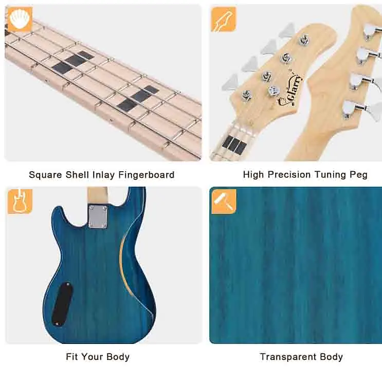 Наша электрическая бас-гитара - идеальный подарок как для начинающих, так и для начинающих музыкантов. Благодаря регулируемой высоте струн и настройке в верхней части грифа, каждая из 4 струн может быть точно настроена в соответствии с вашими предпочтениями.