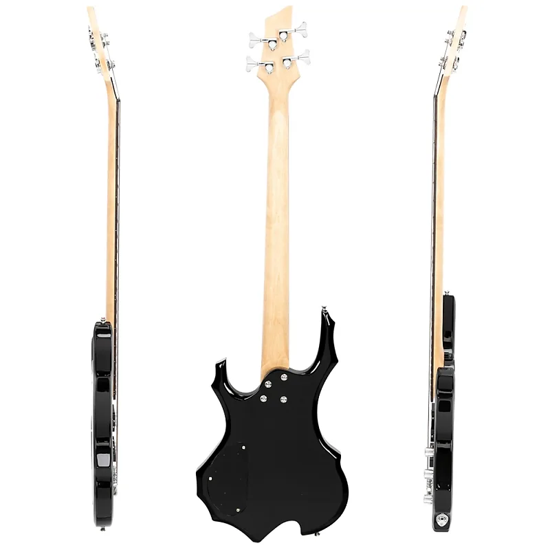 Эта электрическая бас-гитара обладает потрясающей формой «пламя», которая создает впечатление, что она горит. Премиальная инкрустация корпуса на грифе из палисандра выглядит эффектно и добавляет уникальности инструменту. Это идеальный подарок для любителей музыки, которые ценят оригинальные инструменты.