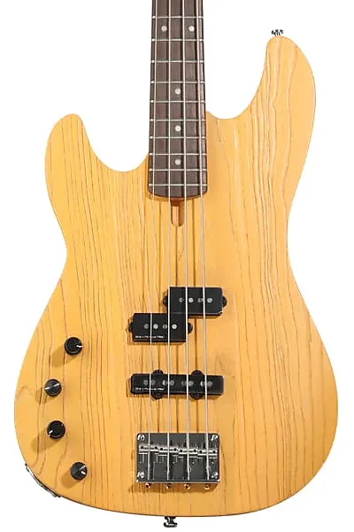 Электрический бас, леворукий, с корпусом из махагони, верхней декой из ясеня, грифом из клена, грифовой накладкой из клена и двумя одноразрядными звукоснимателями - цвет ирискового карамельного.