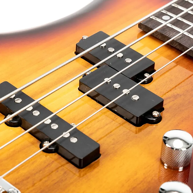 Бас-гитара полноразмерного типа оснащена стандартным четырехседельным мостом, который эффективно передает колебания струн прямо на корпус, обеспечивая более богатое звучание. Наши раздельные сингл-купольные звукосниматели предлагают более мощный среднечастотный выход и более глубокий бас по сравнению с обычными сингл-купольными звукоснимателями, обеспечивая выдающееся качество звука.