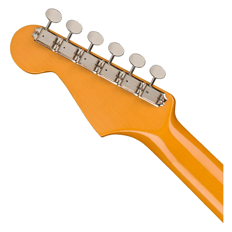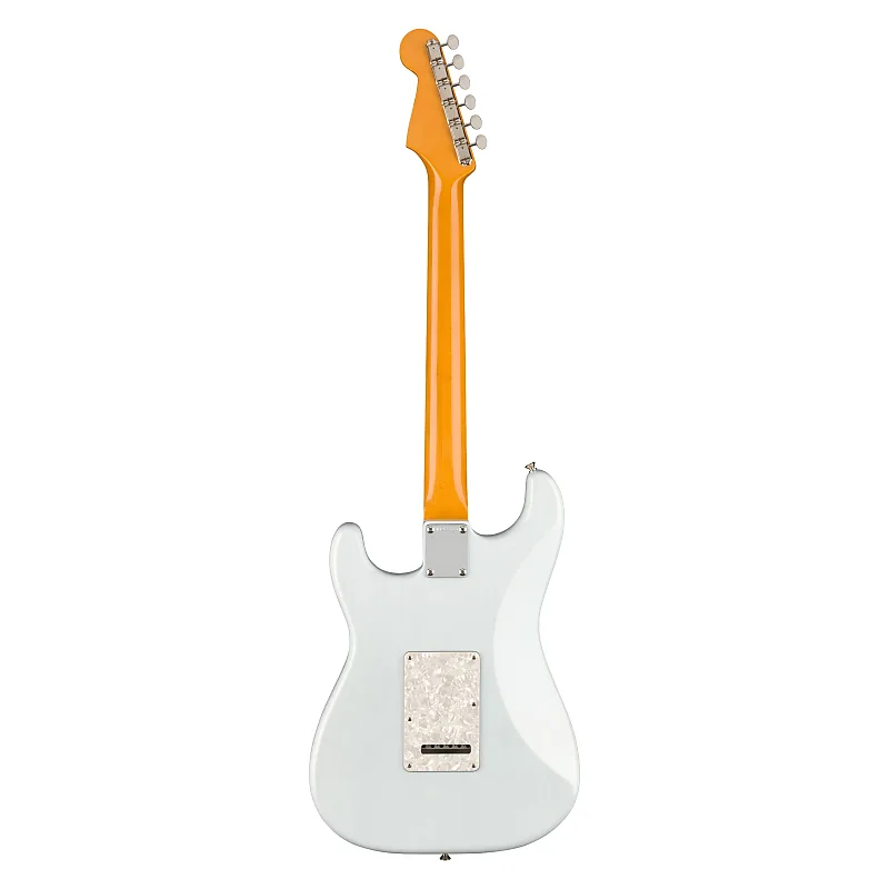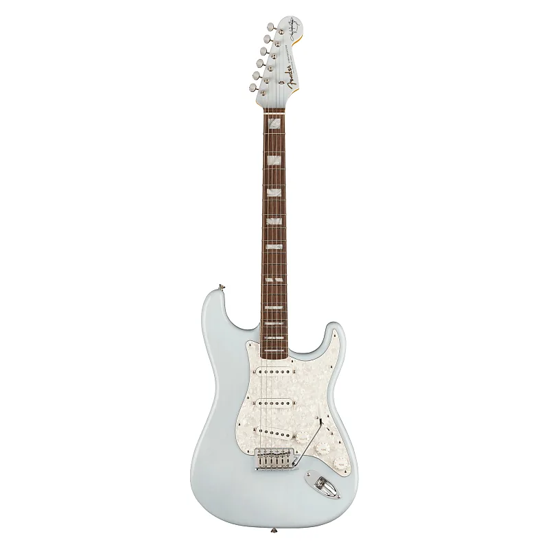 Гитара Kenny Wayne Shepherd Stratocaster оснащена корпусом из камерного ясеня для яркого и резонансного звучания, а лаковое покрытие Transparent Faded Sonic Blue подчеркивает красивую текстуру ясеня. Деревянная шея из клена с формой «C», вдохновленная ранними 60-ми годами, и окантованная грифовая дека из палисандра с радиусом 7,25 дюйма обеспечивают комфорт и удобство игры, характерные для золотой эпохи Fender. С тремя кастомными звукоснимателями Kenny Wayne Shepherd эта гитара обеспечивает мощное и полное Страт-тональное звучание.