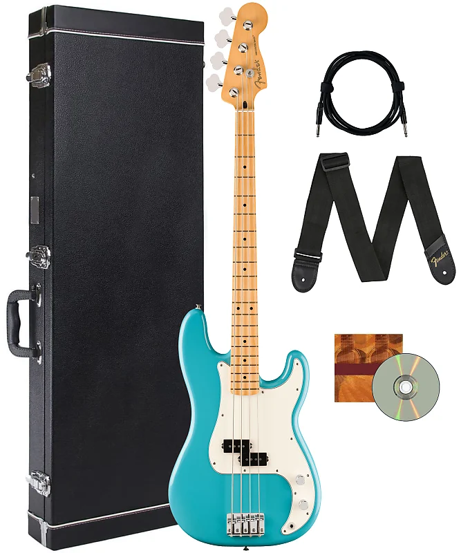 Fender Player II Precision Bass - комплект Aquatone Blue с жестким кейсом, ремнем, инструментальным кабелем и обучающим DVD от Austin Bazaar