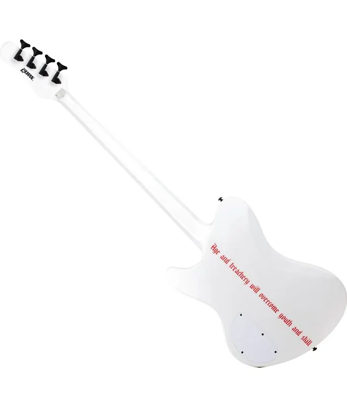 Бас-гитара Schecter Simon Gallup Ultra Spitfire - глянцево-белая с графикой Красный Лев