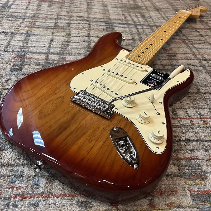 В продаже у Metz Music супер классный и совершенно новый Fender American Professional II Stratocaster в отделке Sienna Sunburst. Мы провели полную настройку этого инструмента, так что он играет наилучшим образом и готов к игре сразу после распаковки.