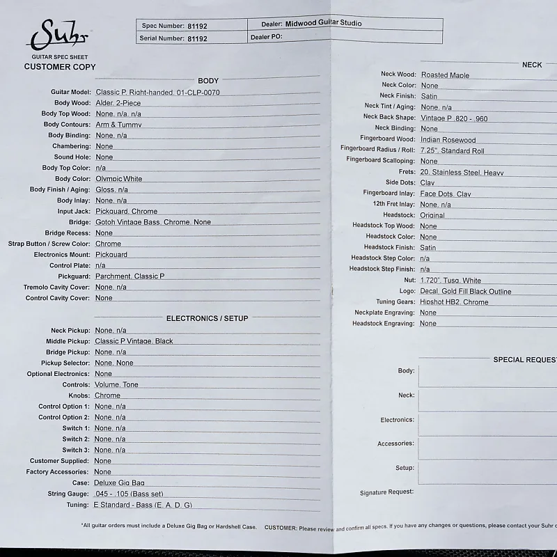Представляем потрясающую бас-гитару Suhr Classic P в цвете Olympic White с грифом из розового дерева. Оснащена винтажным корпусом P с грифом из обожженного клена, грифовая доска из индийского палисандра, винтажный бридж для баса Gotoh и комплект звукоснимателей Suhr Classic P. Этот бас является прекрасным примером качества и мастерства, исходящего из мастерской Suhr. Это не просто старая бас-гитара, это воссоздание одного из самых вечных инструментов на планете с рядом современных улучшений, чтобы обеспечить долговечность, легкость в игре и великолепное звучание. Мы в восторге от того, что наконец получили Classic P после почти двух лет ожидания! Suhr - бренд, которому можно доверять и который предлагает только лучшее. В комплекте чехол Suhr.