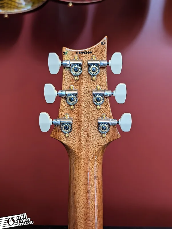 ТЕХНИЧЕСКИЕ ХАРАКТЕРИСТИКИ Конструкция корпуса: цельный корпус Дерево верхней дека: клен Дерево задней дека: красное дерево Форма выпила верхней деки: скрипичная Отделка: высокоглянцевый нитро Количество ладов: 24 Длина мензуры: 25" Материал грифа: Махагон Конструкция грифа: Цельный кусок Грифовой анкер: Двойного действия PRS Форма грифа: Pattern Thin Глубина грифа на 1/2 ладу: 53/64" Глубина грифа на 12 1/2 ладу: 57/64" Ширина грифа у верхнего порожка: 1 11/16" Ширина грифа у корпуса: 2 1/4" Материал накладки: Палисандр Радиус накладки: 10" Инкрустация на накладке: Птицы Логотип на головке грифа: Signature, Вставной Тип соединения грифа и корпуса: Set Бридж: Запатентованный тремоло PRS, Gen III Колки: PRS Phase III Locking Тип фурнитуры: Никель Порожек: PRS Накладка на тросовом анкере: "Custom" Звукосниматель для высоких частот: 85/15 Звукосниматель для низких частот: 85/15 Органы управления: Регуляторы громкости и тембра с 5-позиционным переключателем звукоснимателей Струны: PRS Signature 10-46 Строй: Стандартный (6 струн): E, A, D, G, B, E Кейс: Жесткий чехол Опции: Верх 10 с гибридной фурнитурой Вес: 7 фунтов 13 унций