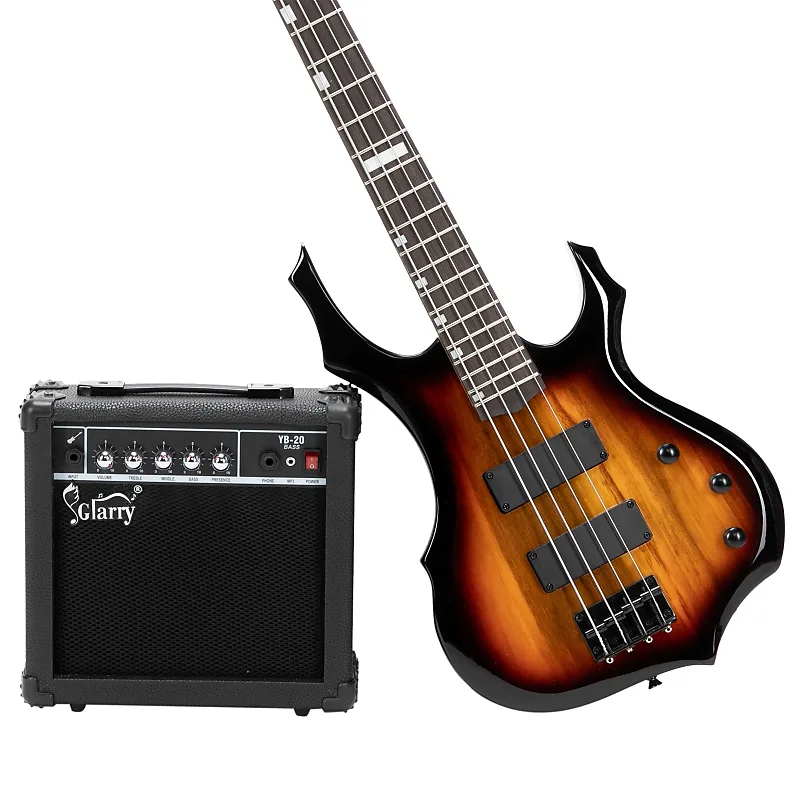 С деревянным и синтетическим корпусом с впечатляющей отделкой, этот полноразмерный электрический бас-гитар Glarry Burning Fire с 4 струнами обязательно привлечет внимание и станет ярким акцентом на сцене.