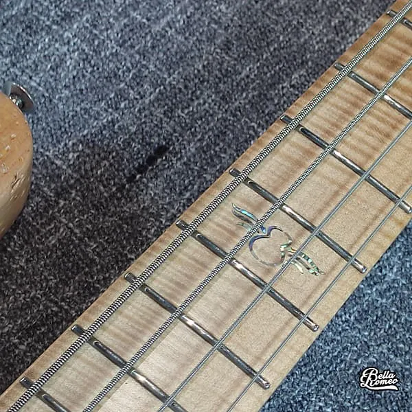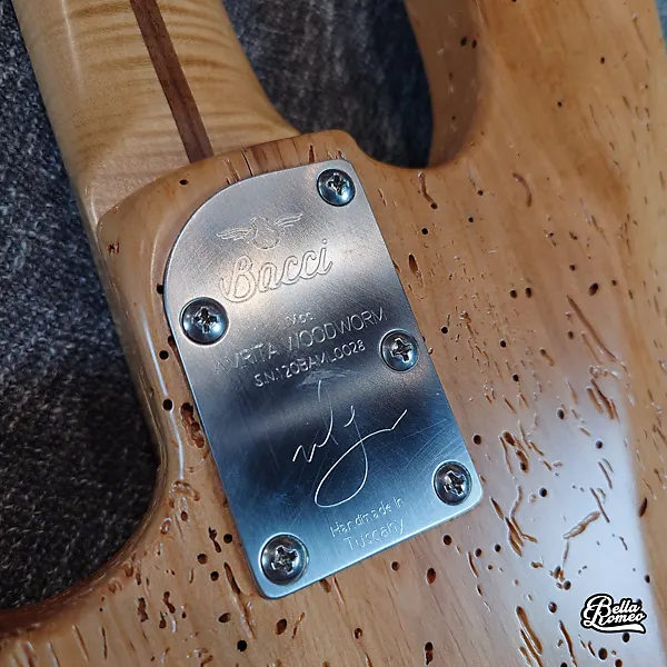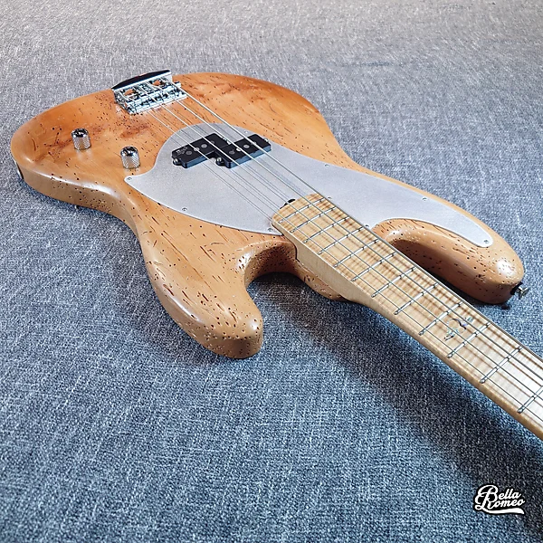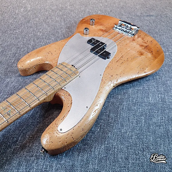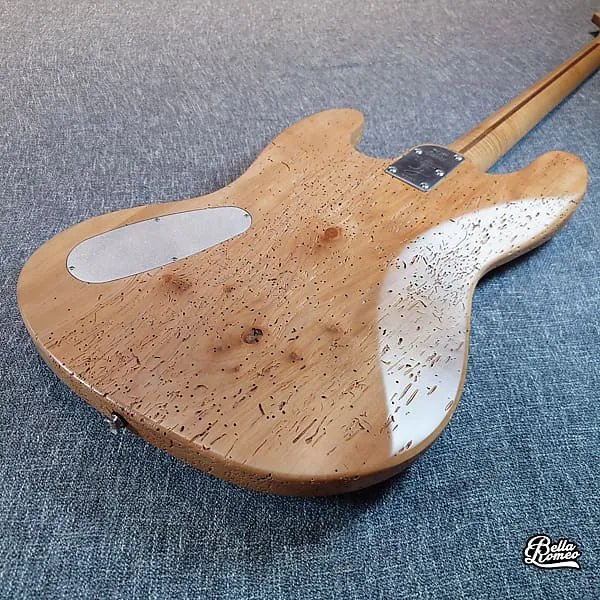 Эта исключительная бас-гитара, результат четырехлетнего интенсивного исследования и проектирования, обладает уникальным использованием двадцатилетней древесины, подвергшейся воздействию жуков-древоточцев, материала, традиционно игнорируемого в изготовление инструментов.